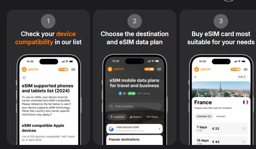 - A wide range of eSIMs are available for different countries and regions. The tourist does not even have to buy a card for a specific country. If he/she intends to travel, he/she can buy a regional eSIM on Airalo. For example, there are eSIMs available for the entire continent of Europe.